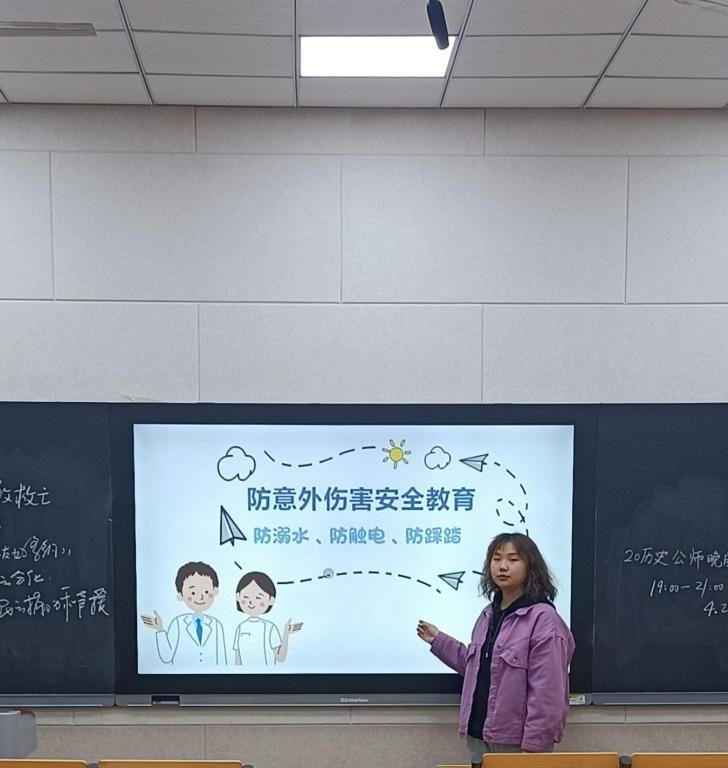 为响应学校校园安全文化月,加强学生教育管理,4月22日至4月23日晚上,正妹av 学生会权益部于文史楼各班教室开展了“防溺水、防触电、防踩踏”宣讲教育活动。