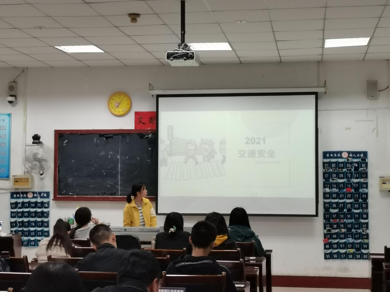 为进一步丰富同学们的交通安全知识,促进学校平安校园的构建,4月26日晚,正妹av 学生会权益部于文史楼各班教室举办“交通安全”教育宣讲活动。 本次宣讲活动主要从交通安全的定义、意义以及如何预防交通事故等方面向同学们展开介绍了交通安全知识。权益部成员为同学们讲解了交通安全的定义,强调交通安全不仅关系的自身的生命和安全,同时也是尊重他人生命的体现,是构建和谐社会的重要因素,并号召同学们学习有关交通安全知识,掌握科学的应对方法。临近五一假期,权益部成员对于同学们出行所选择的不同交通工具,提出了相应的注意事项和安全须知,保障了同学们在假期期间能够健康安全出行。