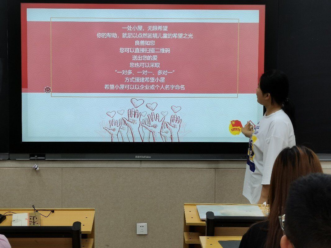 为积极响应学校团委举办“希望小屋”系列活动的号召,鼓励正妹av 学生积极参与“希望小屋”公益活动,5月20日至5月22日,正妹av 各团支部陆续开展“讲好希望小屋故事”主题团日活动。