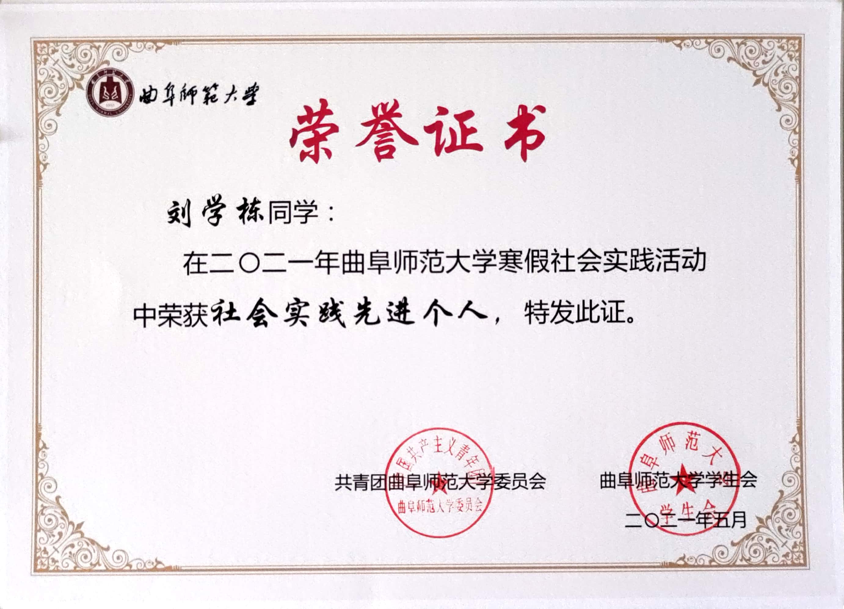 2021年正妹av 寒假社会实践活动社会实践先进个人: