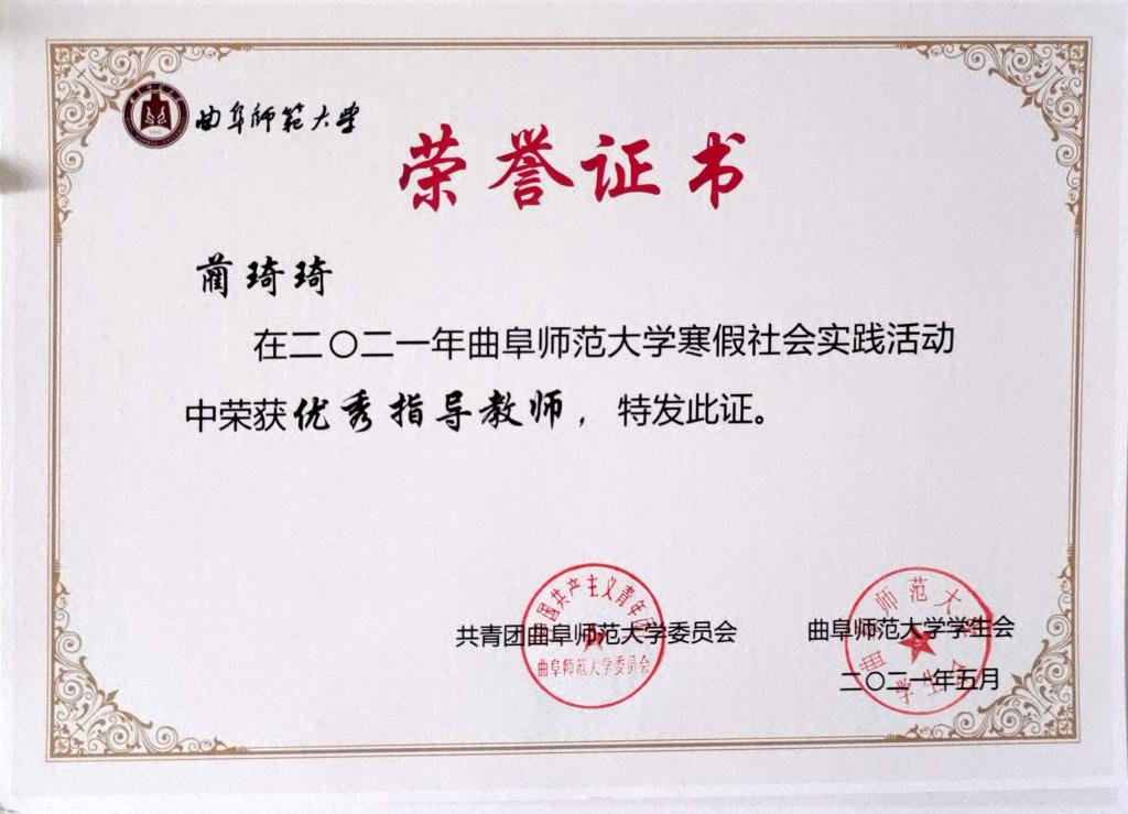 2021年正妹av 寒假社会实践活动优秀指导教师: