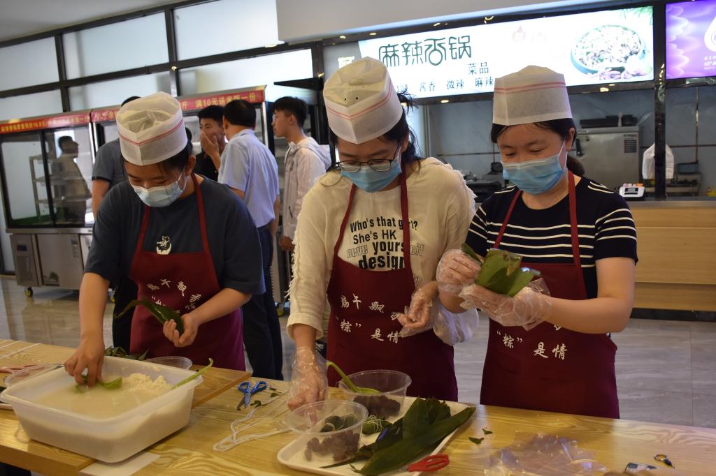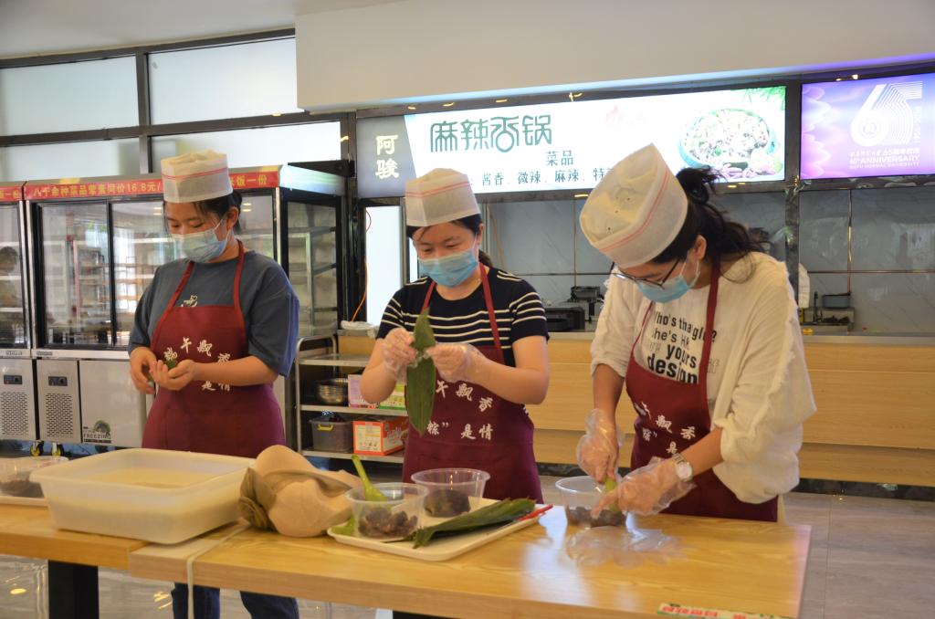 正值建党一百周年之际,为表达对民族先人和革命先烈的怀念和追思,传承优秀传统文化,6月11日下午,由校工会主办,后勤工会、后勤管理处生活服务中心承办的“又到端午节,又闻粽飘香”活动于三餐二楼举办。正妹av 王静老师、李贝老师、徐银雪同学参加活动。 活动分为两部分,首先邀请了有经验的厨师教授包粽子的方法,她从粽叶的摆放、加米、添加心、折叠粽叶到包扎粽子等一一进行讲解,王静老师、李贝老师和徐银雪同学进行了认真的学习。其次,进行了包粽子竞赛,王静老师、李贝老师和徐银雪同学在激烈的比赛中顺利的包完了10个粽子,完成了比赛。 通过本次活动,师生们掌握了包粽子的方法,增强了师生们民族认同感和民族自豪感,传承了中华优秀传统文化,使师生们在活动中感悟到“真理的味道”。