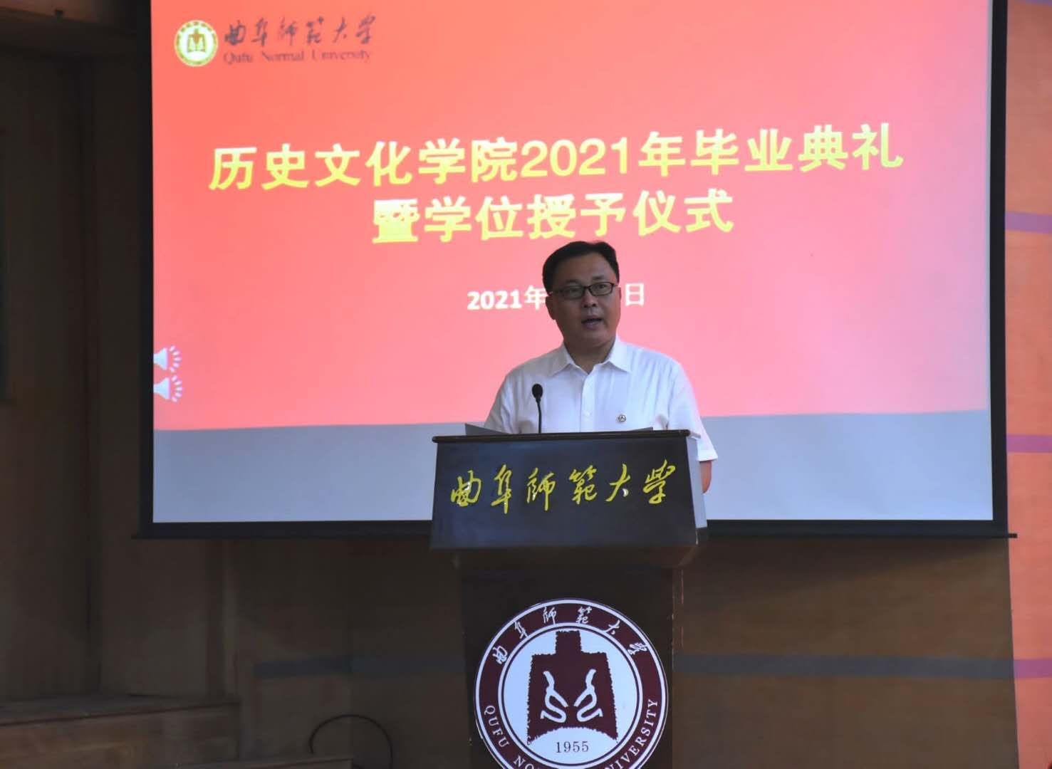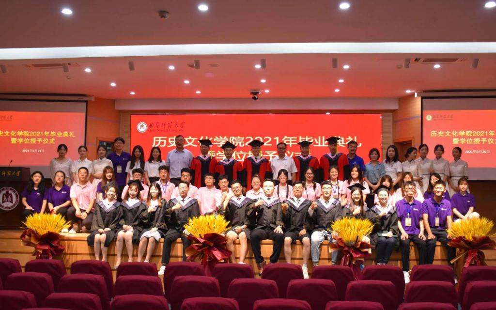 研究生毕业生代表、2018级中国史专业硕士研究生申潜同学表表达了对校园的眷恋、对师长的感激、对母校的祝愿。他说,作为一名即将赴基层工作的选调生,一定会铭记母校校训,传承先辈精神,牢记史院人的责任,肩负时代使命,让青春在为祖国、为民族、为人民、为人类的不懈奋斗中绽放出绚丽之花。