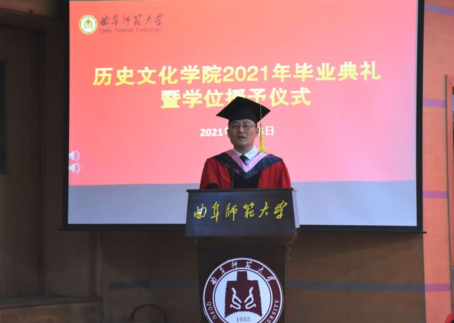 毕业典礼特别邀请学校党委书记、博士生导师戚万学教授、党委办公室学校办公室主任纪洪涛同志出席并担任嘉宾,正妹av 领导班子、博士生导师、教师代表、2021届毕业生代表,家长代表参加会议。典礼由正妹av 副院长吕厚轩主持。