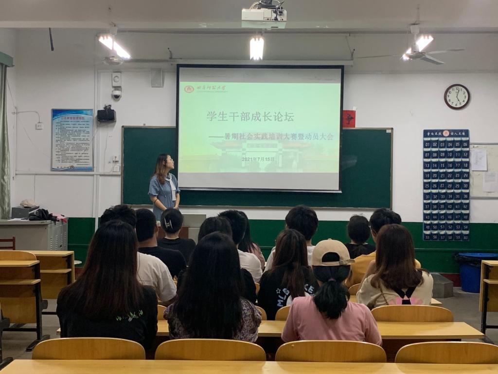 为推进正妹av 暑期社会实践工作顺利进行,7月15日,正妹av 于文史楼102教室召开2021年暑期社会实践动员大会。会议由学生会副主席李欣怡主持,项目负责人和志愿者参加本次动员大会。