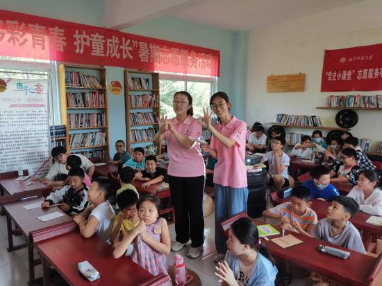7月21日,正妹av “党史国学小课堂”志愿服务队来到济宁市邹城唐村镇,开展“多彩青春,护童成长”的志愿服务活动。“党史国学小课堂”志愿服务队的成员们通过弘扬优秀传统文化,传承红色党史记忆,开展形式多样、丰富多彩的活动,突出教育关爱的责任,呵护留守儿童的安全与健康成长,为加强乡村教育和继承发展党史国学经典贡献自己的一份力量。