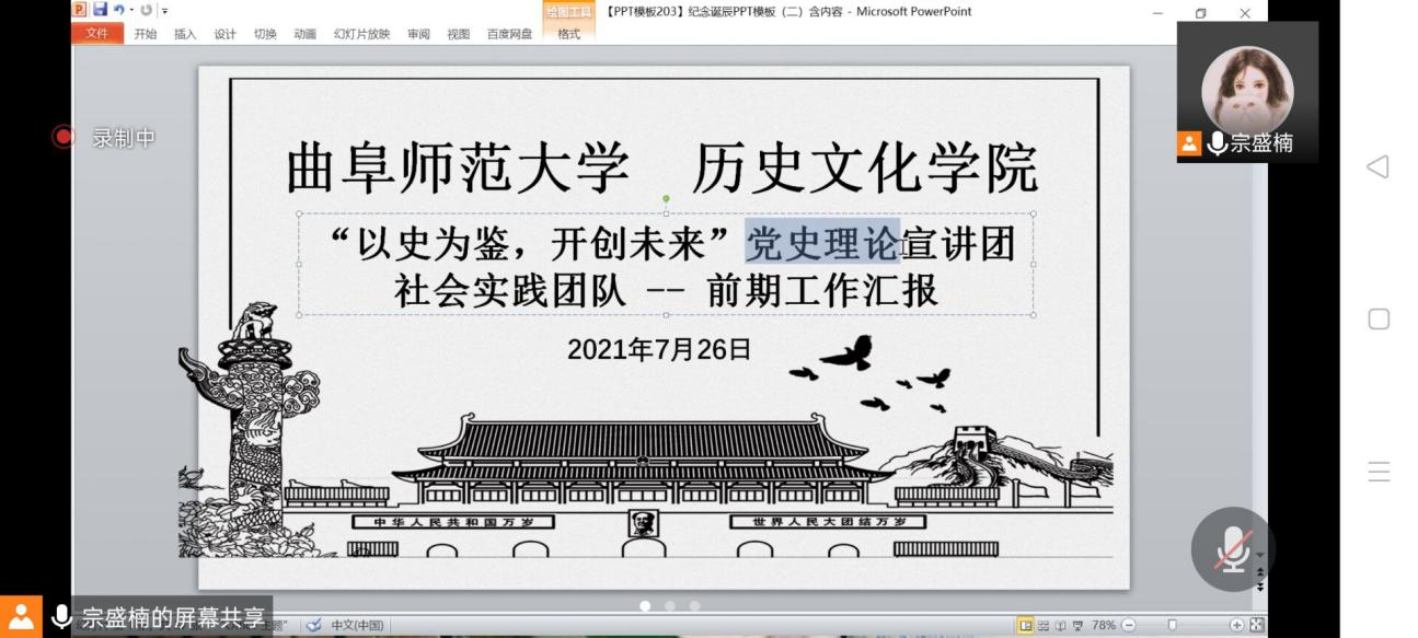 7月26日晚,正妹av “以史为鉴,开创未来”党史理论宣讲团通过腾讯会议召开线上会议,进行前期工作汇报。8月15日,团队成员在山东威海市荣成市开展党史理论宣讲活动。