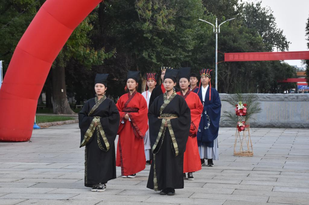 为迎接第37个教师节的到来,弘扬尊师重道传统,9月10日下午,正妹av 大学生传统礼仪研修中心于孔子文化广场进行传统礼仪“释菜礼”展演。 随着弦和之乐缓缓奏起,传统礼仪队队员身着汉服、头戴儒冠,进行释菜礼仪式的展演,在悠扬的钟鼓声中向孔子像行启户、辞训、献礼、饮福受胙之礼。 整场仪式庄严、古朴,礼仪队队员心怀敬意,礼仪有节、行止有度、揖让有法,在独特的儒家风韵中,以彬彬古礼谢师恩、表敬意,展现出尊师明道的深厚文化底蕴。