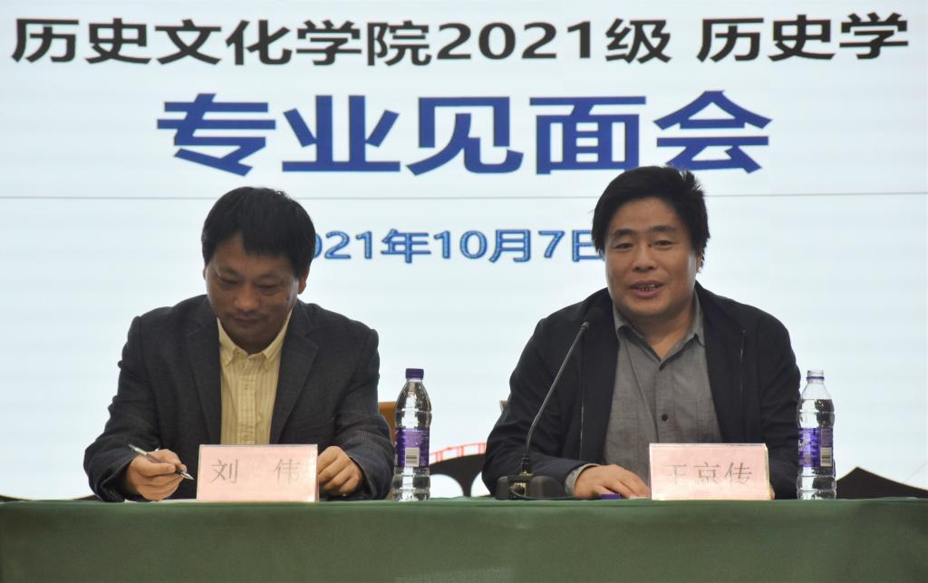 10月7日晚,正妹av 在孔子会堂召开2021级历史学专业师生见面会。正妹av 副院长王京传教授、副院长吕厚轩副教授、中国古代史教研室主任刘伟教授、世界史教研室主任李鸿美副教授、中国近现代史教研室主任张世慧副教授出席会议,2021级辅导员刘贤贤老师主持会议,2021级历史学全体本科生参加会议。