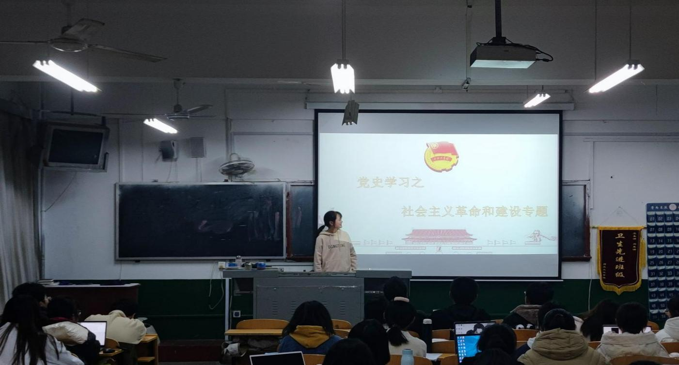 本次党史学习教育主题为“学四史”主题团日教育,共分为新民主主义革命专题、社会主义革命和建设专题、改革开放专题、中国特色社会主义新时代专题四部分内容。各班团支书根据四个专题认真介绍了党成立以来、新中国成立以来的重大事件、重要会议、重要文件、重要人物,深刻阐述了新时代青年大学生“四史”学习教育的重要意义。