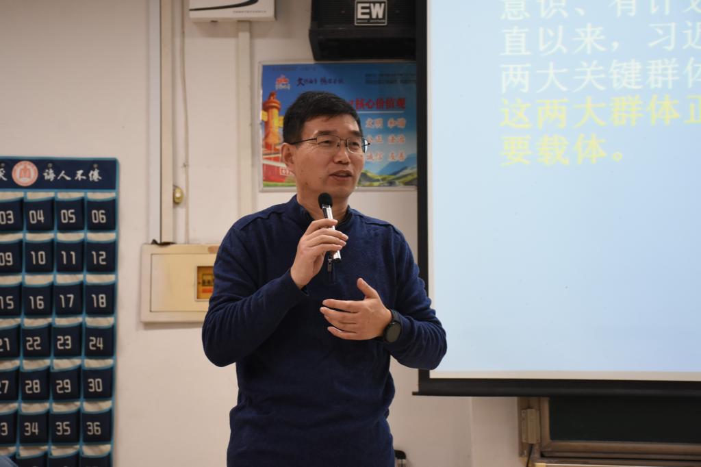 11月17日下午,正妹av 于综合楼306教室成功举办2021—2022学年“青马工程”培训讲座,本次讲座邀请金刚教授出席并担任主讲人。讲座由正妹av 2021级辅导员刘贤贤主持,学生会主席团、学生会各部门负责人以及2020级、2021级各班班长、团支书参加本次讲座。