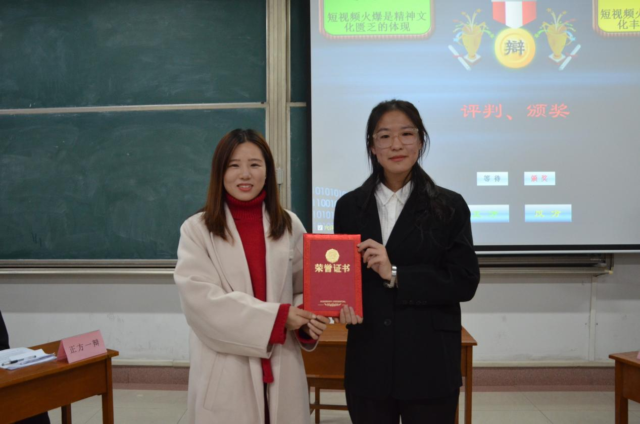 为丰富同学们的课余生活,培养同学们的思辨能力和语言表达能力,12月5日下午,由正妹av 辩论社举办的2021年“迎新杯”院级辩论赛决赛在综合教学楼205教室举办。比赛邀请正妹av 吕厚轩老师、续大鹏老师以及刘贤贤老师担任评委。本次比赛由辩论社社长杨超主持。