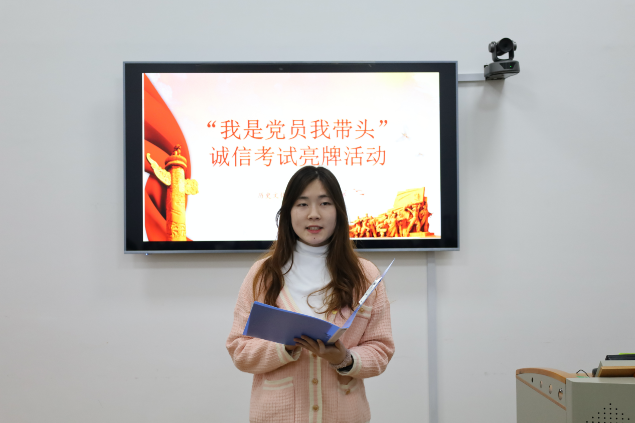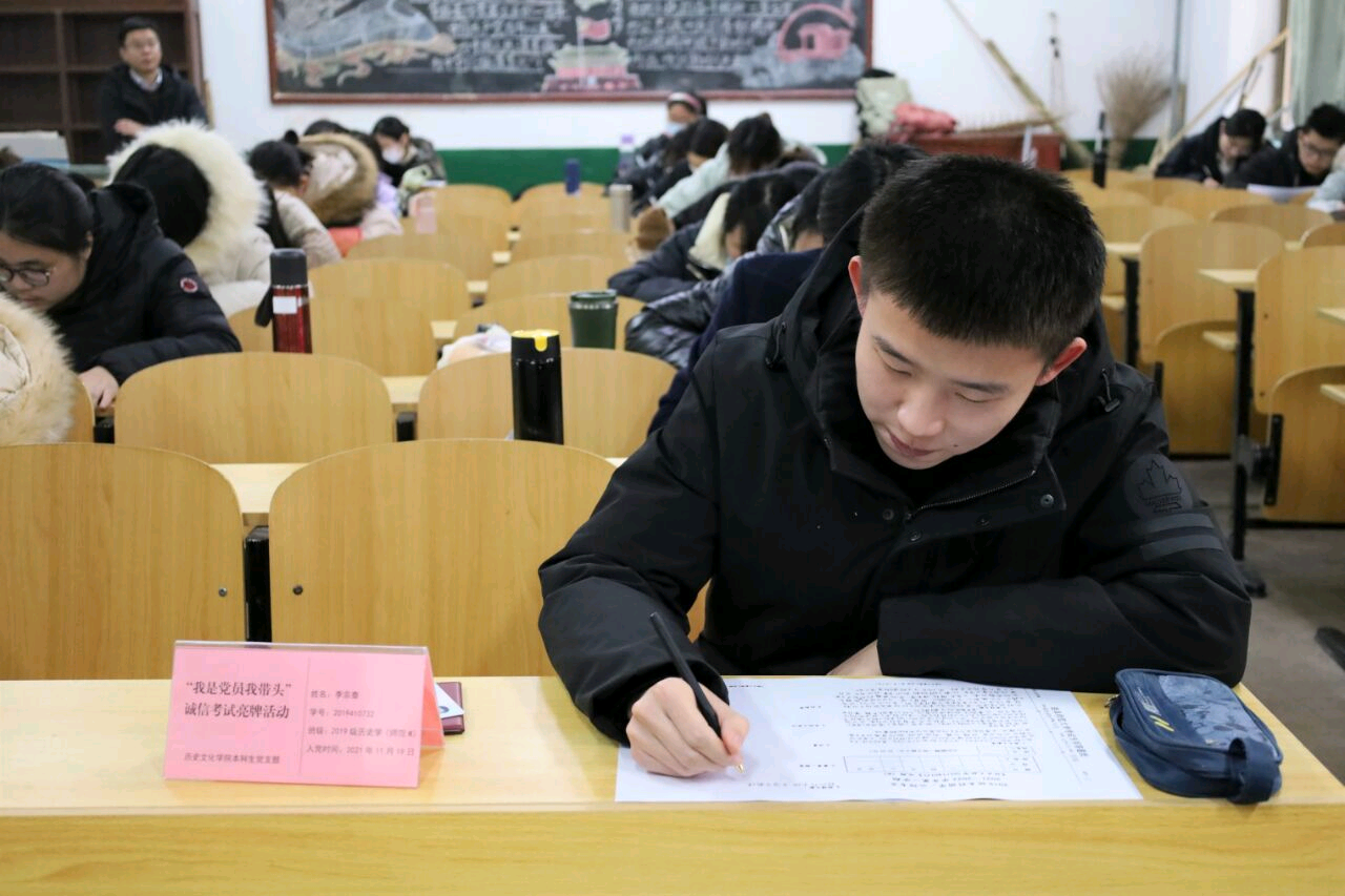 正妹av 各年级辅导员为同学们开展诚信考试主题班会,强调诚实守信是每个大学生都应该遵守的准则,树立道德之新风,立诚信之根基是当代大学生义不容辞的责任,教育同学们积极备考、诚信应考。各年纪有序组织同学们仔细阅读期末考试承诺书,随后,同学们自发签订考试承诺书,同学们表示一定信守承诺、诚信考试。本科生党支部于文史楼505教室举办“我是党员我带头”诚信考试亮牌活动,本科生全体党员参加活动。党员代表杨紫依同志表示,全体党员要将道德原则与道德规范内化于心、外化于行,求真务实,诚信考试。考试期间,正妹av 本科生全体党员亮牌考试,为其他同学诚信考试起到了良好的模范带头作用。