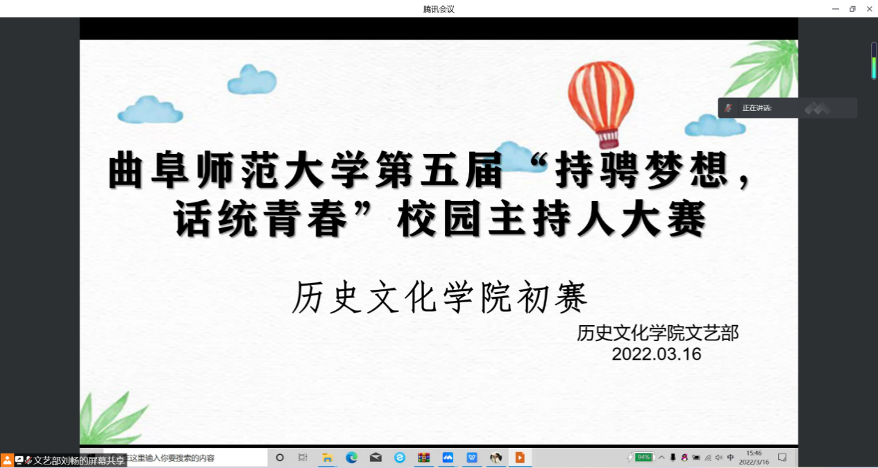 为丰富正妹av 学子课余生活内容、提升正妹av 学子自我谈吐能力,3月16日,正妹av 于线上举办第五届“持骋梦想,话统青春”校园主持人大赛初赛。正妹av 团委副书记王红宇、吕依琳以及学生会主席兰鸽、副主席刘吉、窦鲁豫、宫志伟、宿宸伟、大学生传统礼仪研修中心主任林欣、第四届校园主持人大赛冠军王子涵出席比赛并担任评委。