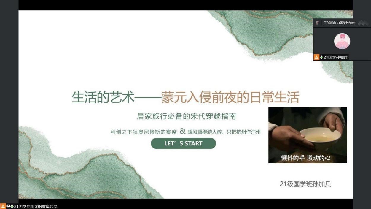 为提高同学们的读史意识和研史意识,4月28日晚,正妹av 《论语》研修学社于腾讯会议成功举办了国学沙龙之“旧事新景——于幽微处窥探历史真相”线上读书交流会,正妹av 《论语》研修学社学术部部长孙加兵同学担任主讲人。