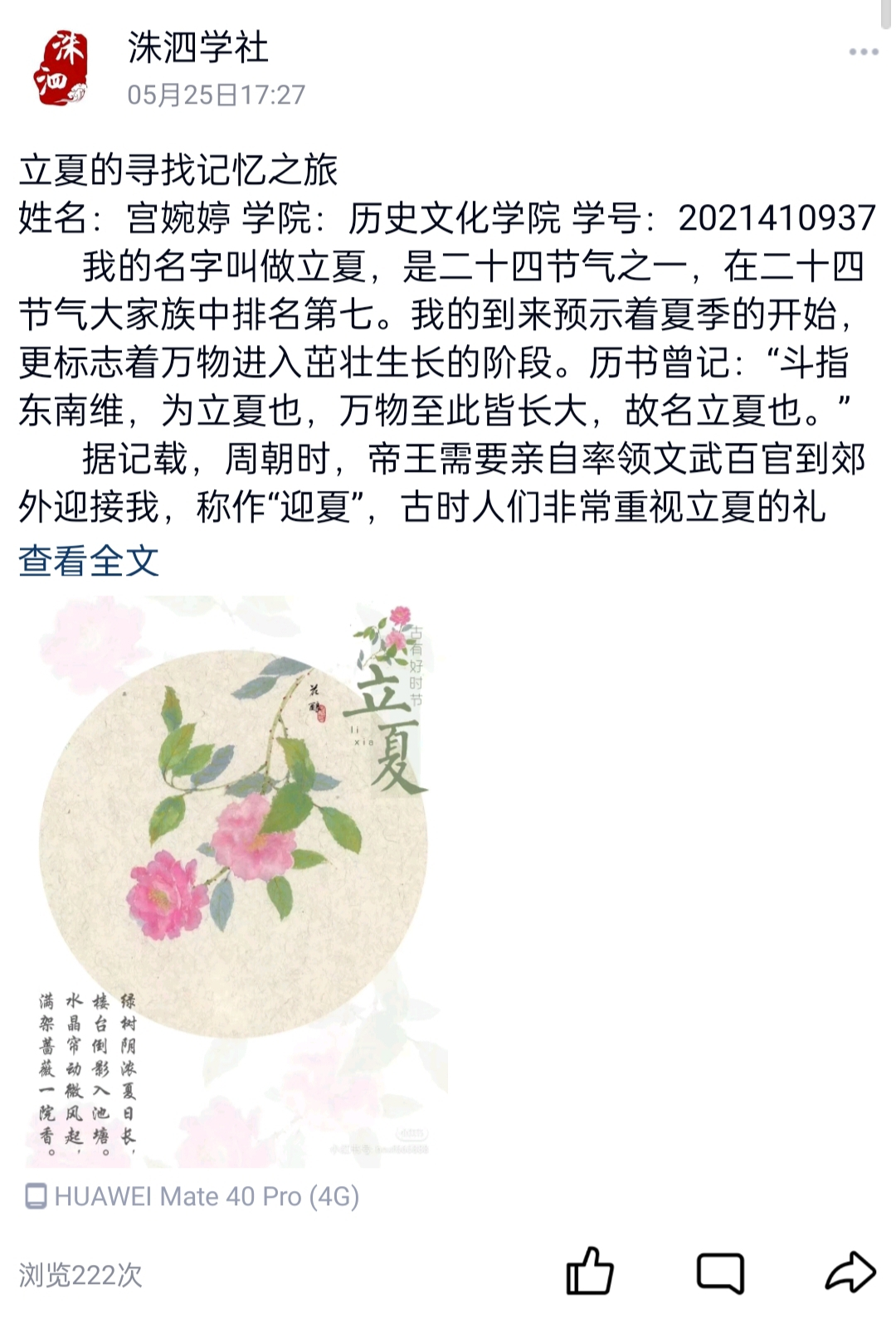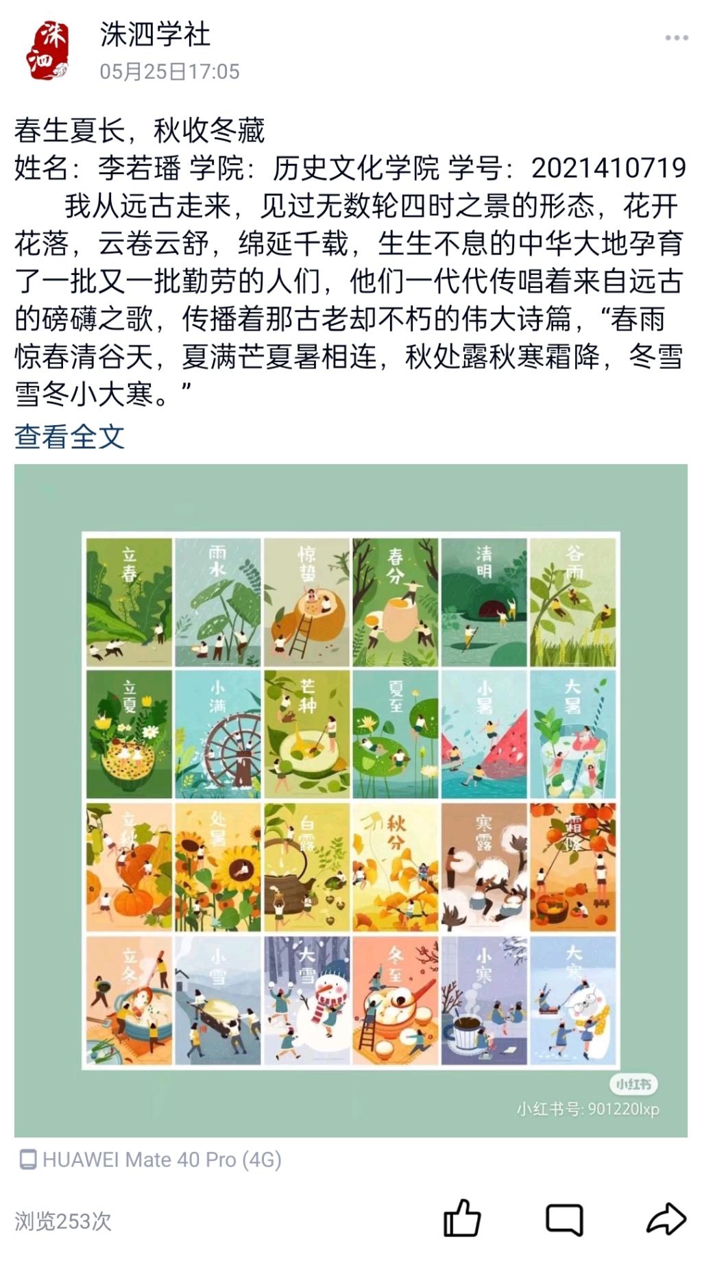 为了加深同学们对“二十四节气”的兴趣,了解中华传统文化,5月1日,正妹av 洙泗学社成功举办了“二十四节气”征文比赛。