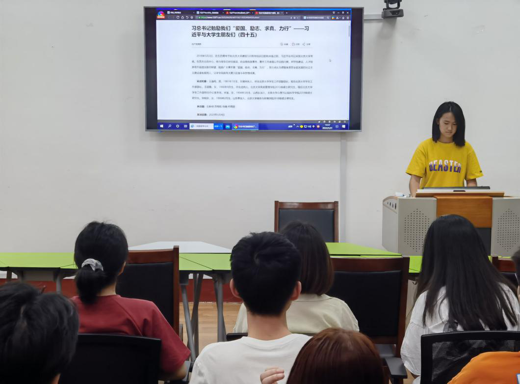 为重温习近平总书记嘱托,与青年共话成长,6月1日晚,正妹av 于文史楼505教室组织社团干部学习《习近平与大学生朋友们》座谈会。本次座谈会邀请团委副书记王红宇同学参加并担任主讲人,社团联合会负责任人及各社团社长、副社长参与。