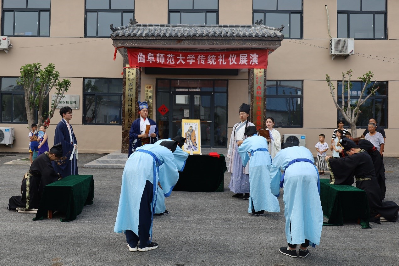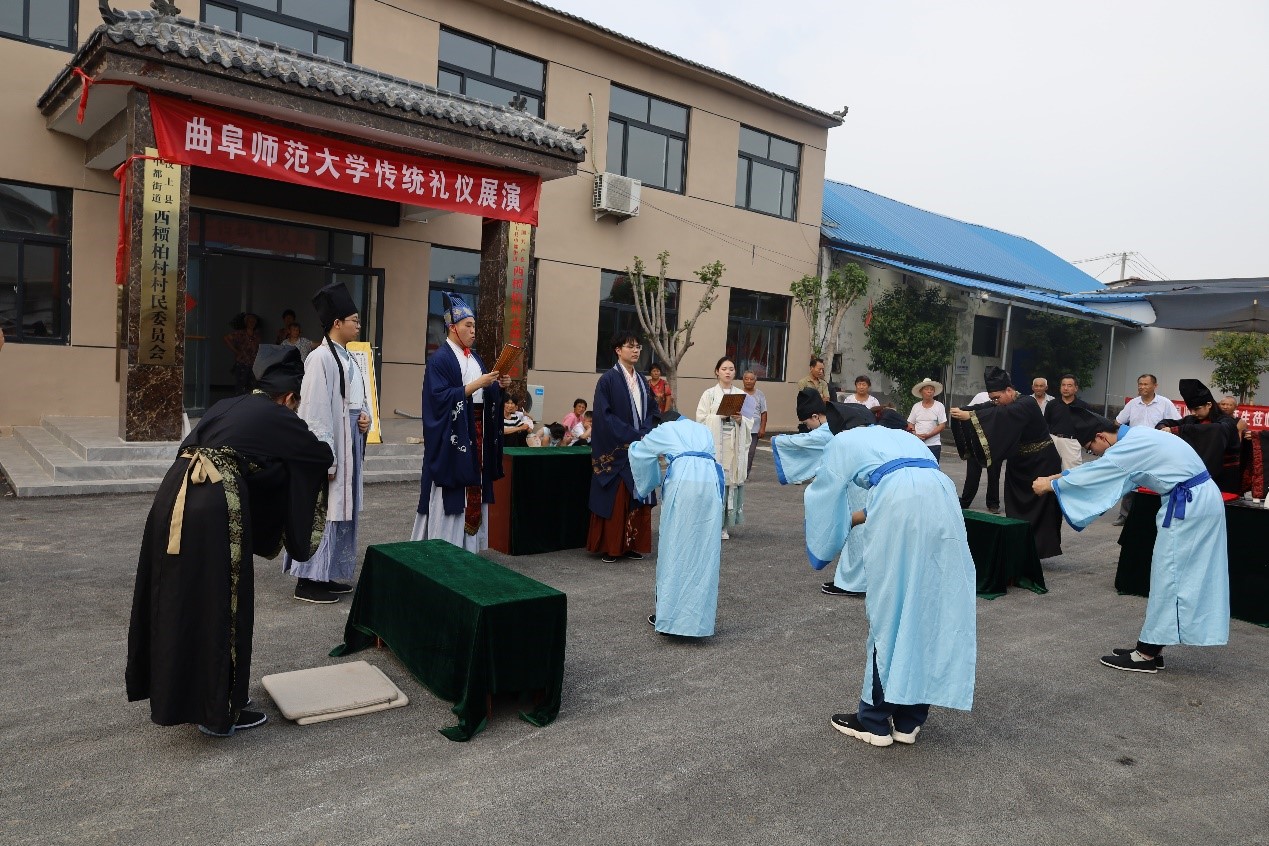 为弘扬和普及中华优秀传统文化,7月2日上午正妹av “儒家文化齐鲁行”社会实践团队走进汶上县西槚柏村。队员们在汶上县西槚柏村身着传统儒服进行束脩礼(拜师礼)展演,身体力行传扬儒风,在这片文化圣地之上,一路撒播传播文化之种。