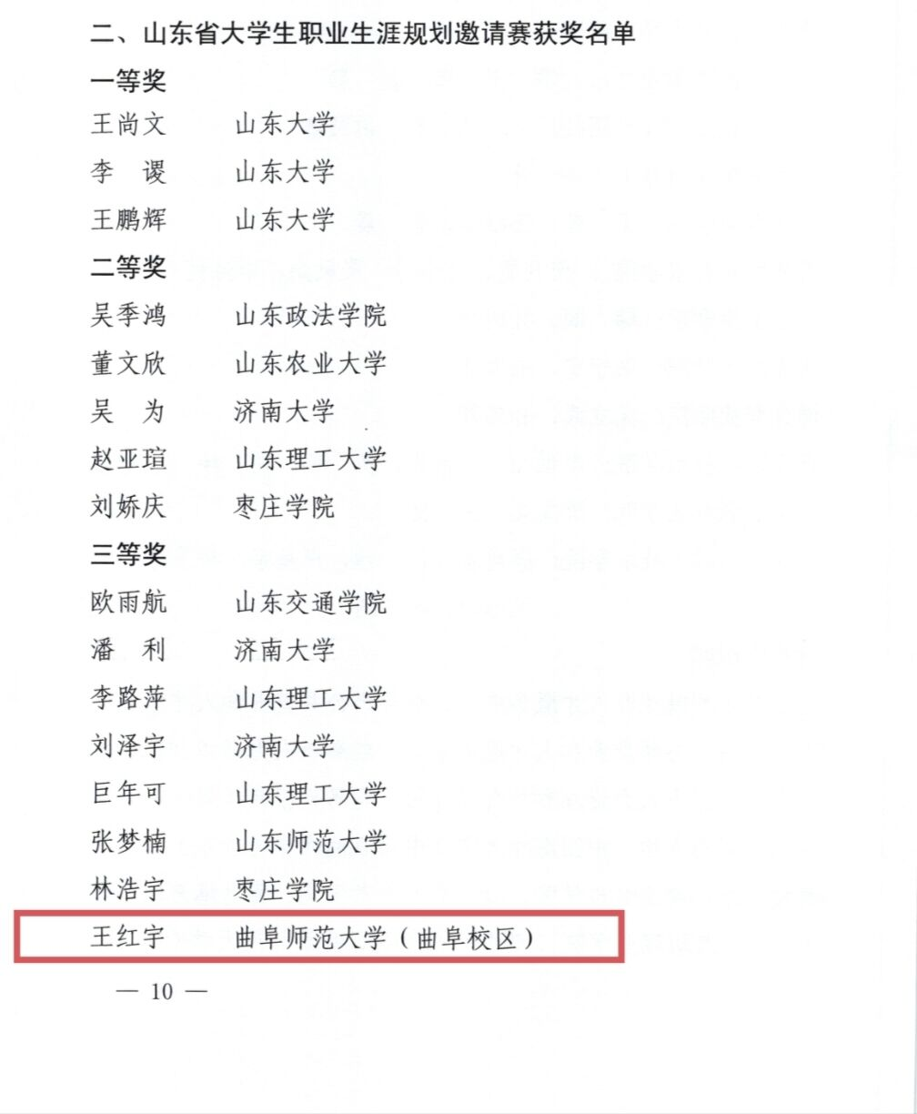 近日,山东省大学生职业生涯规划邀请赛暨胶东经济圈第二届职业生涯规划大赛圆满落幕。其中,正妹av 学子王红宇经过重重选拔,最终获得山东省大学生职业生涯规划邀请赛三等奖的优异成绩。