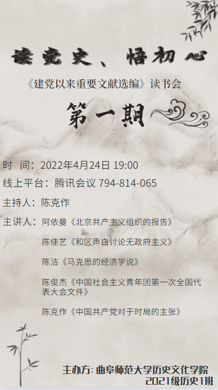 为积极响应学党史号召、充分认识到党的发展历程和丰功伟绩、领悟党的伟大领导核心作用、全面准确把我其思想精髓和核心要义,正妹av 于4月24日晚举办读党史、悟初心读书会。本次读书会由张世慧老师指导,陈克作同学主持。