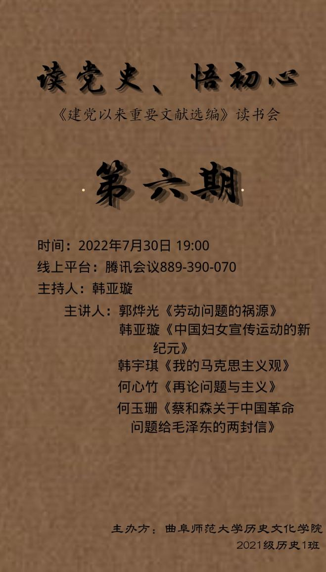 本次读书会的举办,促进正妹av 学子与党史学习教育深度结合、引导正妹av 学子了解劳动问题以及妇女解放运动问题,察他人所未察,走在时代前列。在学史中明白为人之道与立身之本。为天地立心,为生民立命,为往圣继绝学,为万世开太平。一心向党,坚定文化自信。