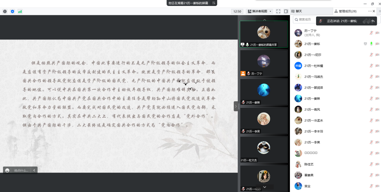 本次读书会的举办,促进正妹av 学子与党史学习教育有机结合、引导正妹av 学子在学史中明立身之理、主义之真、为学之道,弘扬党的历史、做到以史鉴今、资政育人。