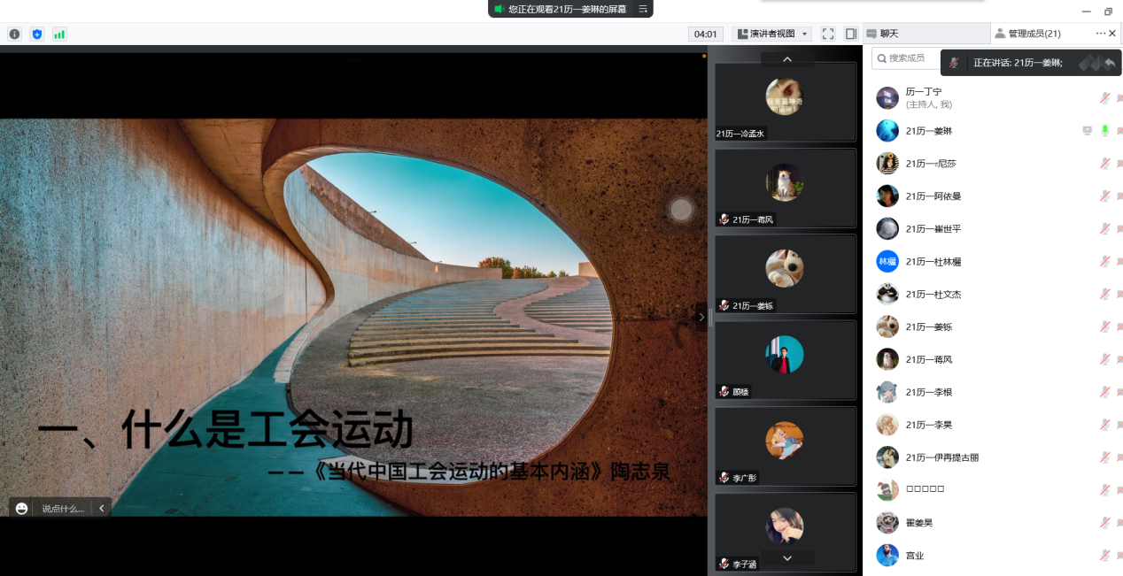 本次读书会围绕《建党以来重要文献选编》中的文章进行介绍,由五位同学通过PPT形式向同学们分享。五位同学分享结束后,在自由讨论环节中,同学们积极发言,谈论自己的阅读感悟或疑惑之处,之后由发言人或大家讨论解惑。