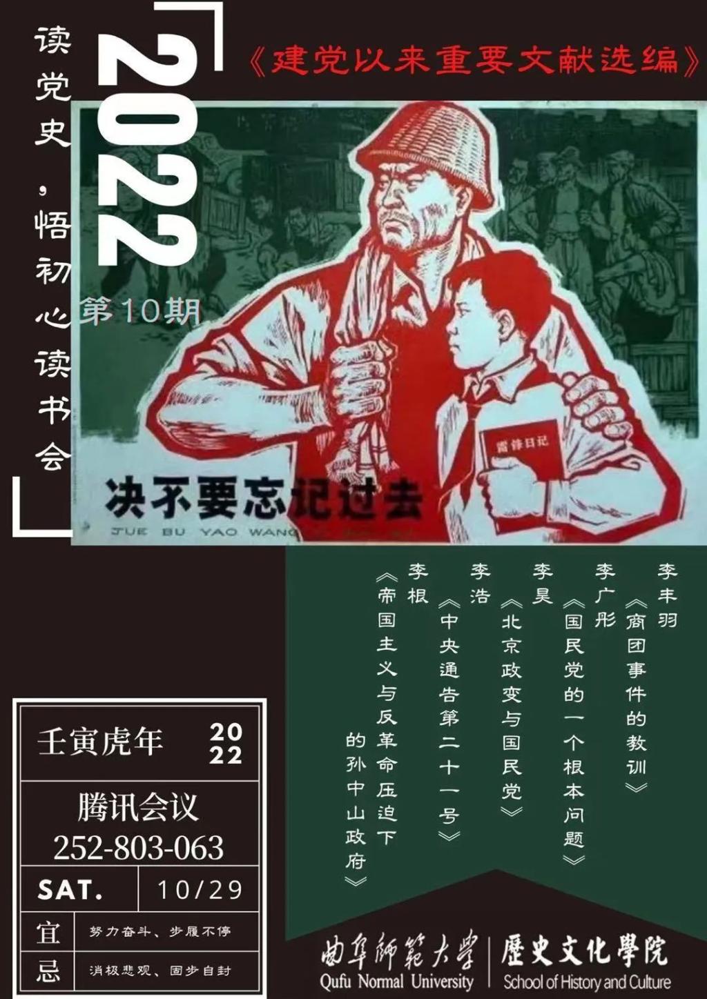 为深入学习党的二十大精神,继续把党史总结、学习、教育、宣传引向深入,正妹av 于11月2日晚举办读党史、悟初心读书会。本次读书会由张世慧老师指导,李昊同学主持。