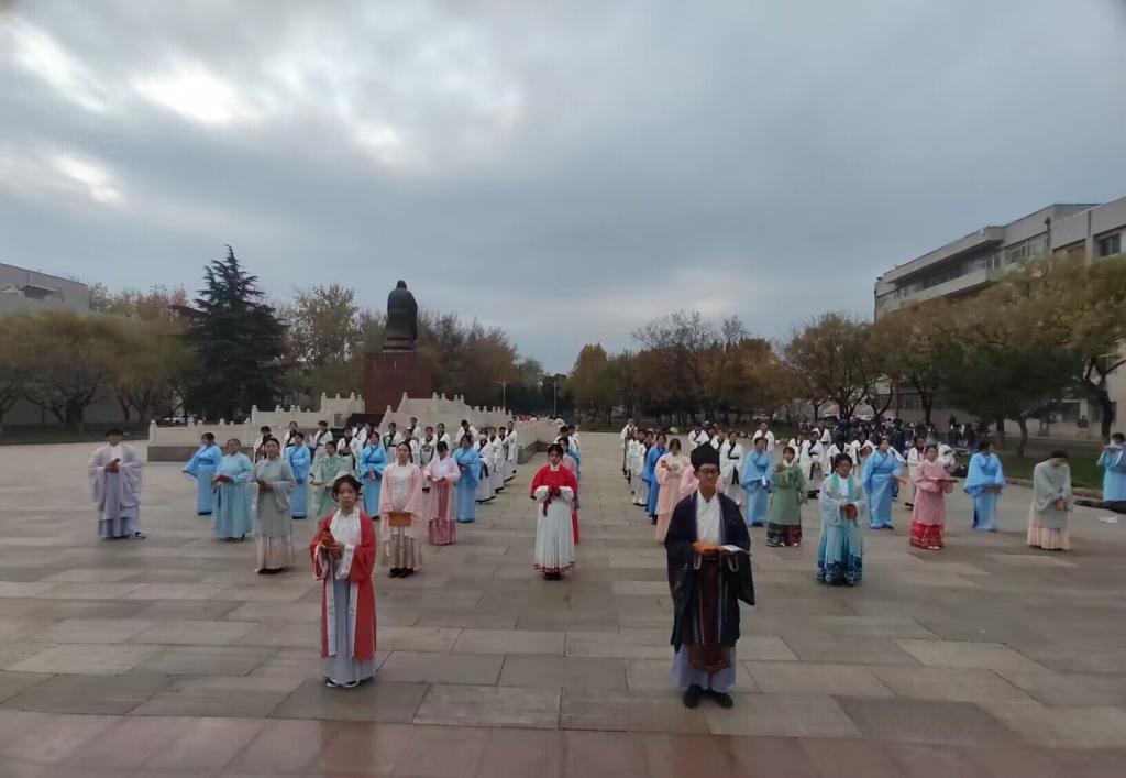 为激发学生学习祖国优秀传统文化的兴趣,帮助学生陶冶情操,10月31日,正妹av 《论语》研修学社于孔子文化广场成功举办了“读经典,品国学”经典诵读活动。