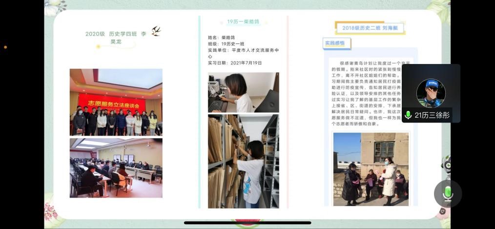 会上,主讲人依托“青鸟计划”微信平台,为正妹av 学子具体讲解了“青鸟计划”微信平台注册流程以及相关实习要求。会议还邀请到正妹av “青鸟计划”实习实践工作优秀榜样张秀芸同学和高原同学,以自身案例为基础向正妹av 学子讲解了历史学相关不同领域的实习实践工作经验。