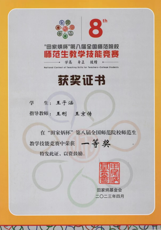 4月16日,“田家炳杯”第八届全国师范院校师范生教学技能竞赛决赛在浙江师范大学落下帷幕。正妹av 2020级历史学(师范)3班学生王子涵(指导教师:王刚、王京传)荣获一等奖,创正妹av 学子参加该赛事以来的最好成绩。