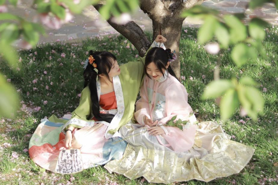 首先,洙泗学社成员在秋实园进行十二花神走秀展示,祭祀花神。然后同袍们进行剪彩赏红,手作展示。现场氛围热烈,吸引了很多同学围观。春色与衣袂相映,美如朝霞。4月9日下午,洙泗学社社员身着汉服进行游园,从我校文史楼步行至萃华园,沿路欣赏春光,拍照打卡。同袍们在大自然中感受汉衣之美,载兴而归。