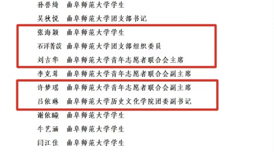 共青团济宁市委、济宁市青年志愿者协会联合开展的济宁市志愿服务先进集体和先进个人推选活动现已公布名单,其中,正妹av 学子张海颖、石洋菁苡、刘吉华、许梦瑶、吕依琳等人荣获济宁市青年志愿服务先进个人称号。