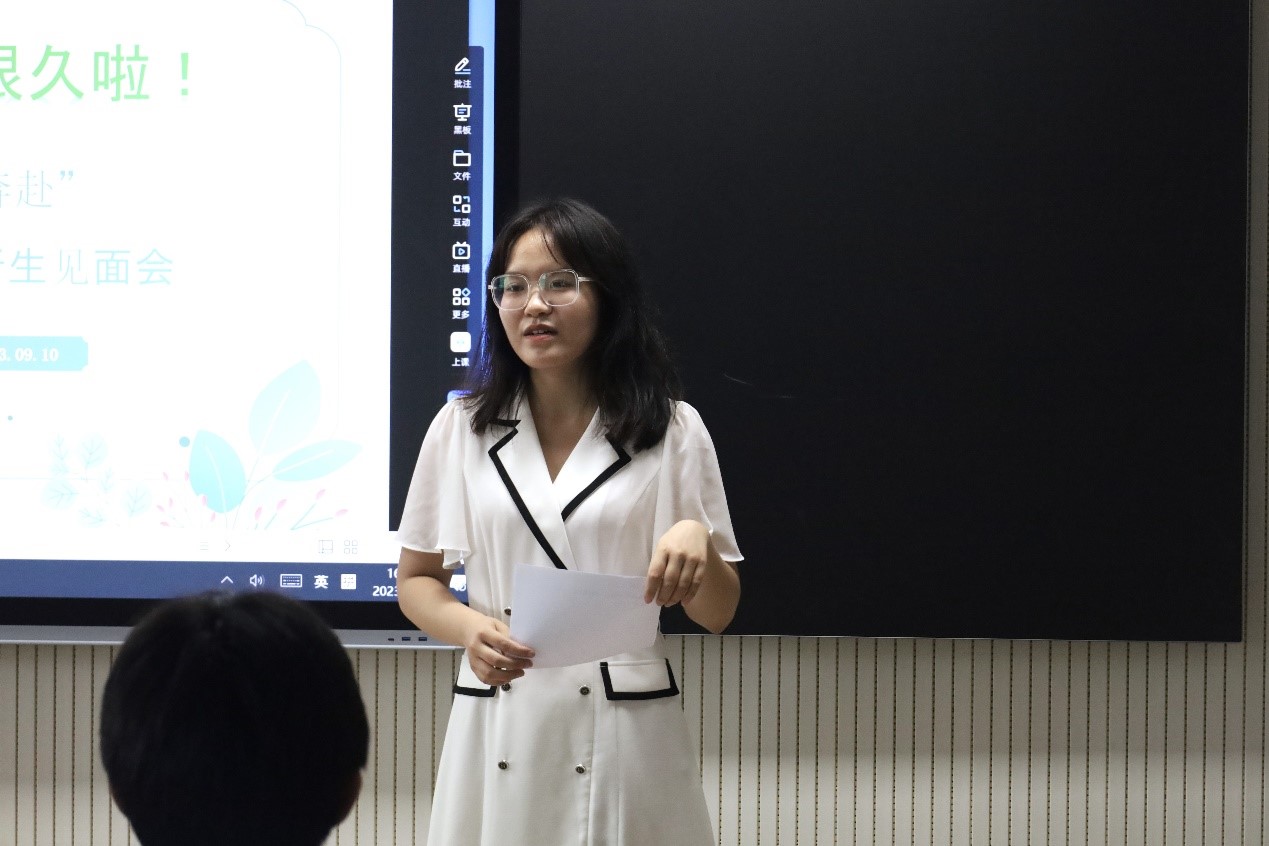 为帮助正妹av 新生快速适应大学生活, 9月10日,正妹av 于致知楼召开新生见面会,正妹av 2023级辅导员石璐老师、夏金金老师出席本次见面会,2023级全体学生参加。