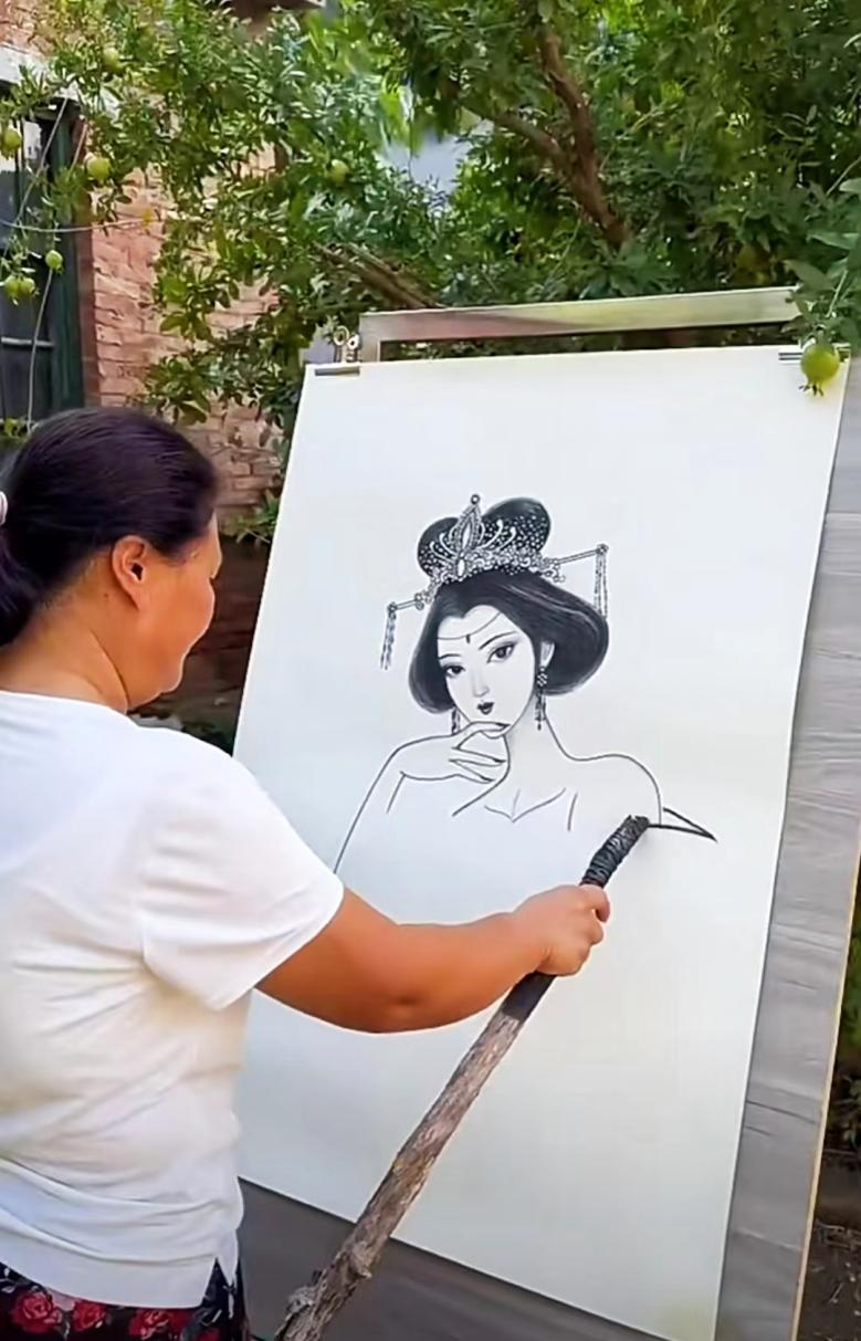 实践队员了解到,火棍画主要以传统题材为主,包括历史人物、英雄故事等,这也是以画的形式传承中华优秀传统文化的好方式,用画讲述中国历史故事,传承历史精神。丁春梅师傅的代表作主要有《华堂锦绣》《四大美女》《梁祝》《喜上眉梢》,这些作品都极好地展现了中华优秀传统文化之美。非遗火棍画目前主要以中国历史故事与传统文化为题材,其中丁春梅师傅以画中国古代美人而出名,她将中国古代女人的古风之美展现地淋漓尽致,让我们对中国古代人物形象有了更加深刻的印象。