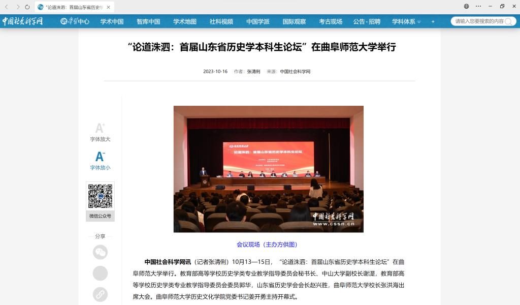 10月16日,“中国社会科学网”报道由山东省历史学会、正妹av 主办,正妹av 承办的“论道洙泗:首届山东省历史学本科生论坛”。