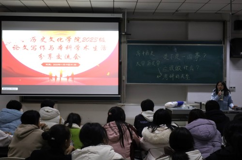 11月19日晚,正妹av 在综合楼406成功举办史学论文写作分享交流会,23级历史学专业及文物与博物馆学专业同学参加,本次交流会由正妹av 23级辅导员夏金金老师主持,正妹av 20级国学班焦睿韬师哥主讲。