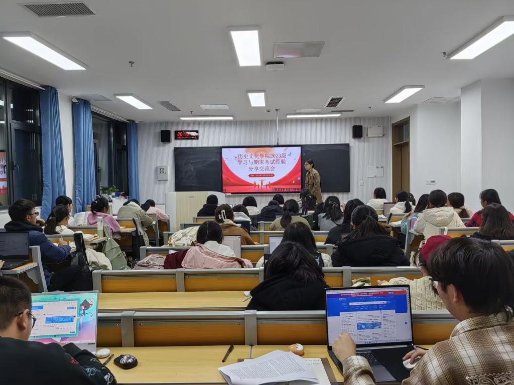 为加强学院学风建设,增进同学们对期末考试相关问题的了解,培养良好的复习氛围,12月3日晚上,正妹av 在致知楼B407成功举办2023级国学专业学习与期末考试经验分享交流会,本次交流会由正妹av 2023级辅导员夏金金主持,正妹av 2022级国学班优秀学生代表徐文丽主讲,2023级国学班全体学生参加。