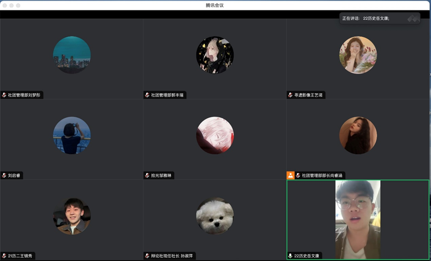 答辩会上,参与本次换届的十二个学生社团,二十位竞选者依次发表竞选演讲,发言结束后各位评审对候选人进行提问。所有候选人答辩完毕后,会议投票选举2024年学生社团主要负责人,并于次日公布换届结果。