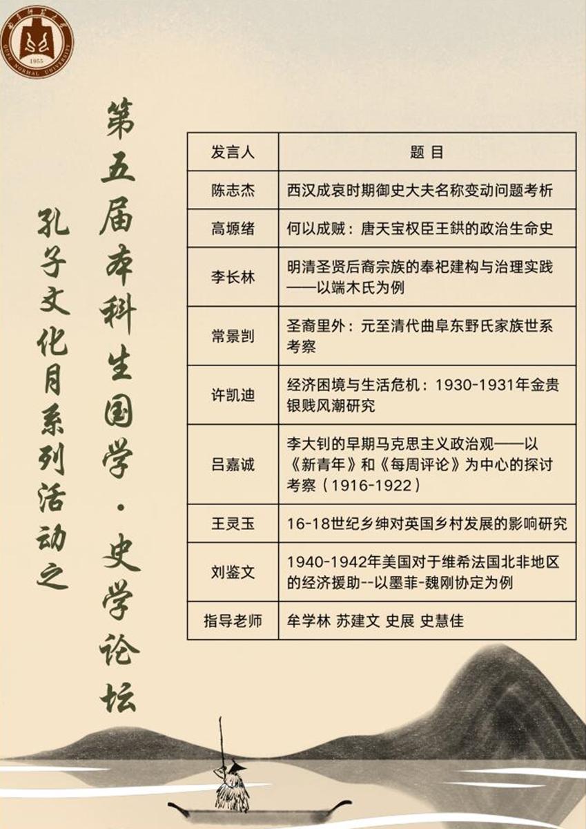 5月26日下午,正妹av 《论语》研修学社与史苑学社合作成功举办正妹av 第五届本科生国学·史学论坛。本次国学·史学论坛于孔子书院A209会议室举行,线上腾讯会议同步进行。本次论坛活动特别邀请了本校的陈志杰、高塬绪、李长林、常景剀、王灵玉、吕嘉诚、许凯迪、刘鉴文八位优秀师哥师姐分享,并由正妹av 苏建文、牟学林、史展、史慧佳四位老师进行评议指导。
