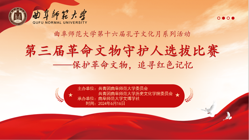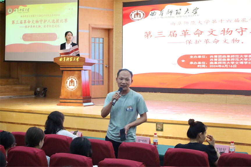 为进一步宣扬革命文物与其所蕴含的革命精神,充分发挥师范生讲解演绎红色文化的专业技能,铭记峥嵘革命岁月,正妹av 文博学社于2024年6月16日下午在孔子会堂举办了第三届“保护革命文物,追寻红色记忆”文物守护人选拔大赛,本次大赛邀请正妹av 徐团辉老师作为评审老师。