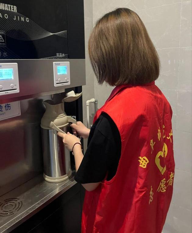 学院在公共区域设置了热水供应点,师生只需前往供应点,用供应点提供的纸杯便可轻松获取热水。供水区志愿者表示,此项服务自推出以来,受到了广大师生的热烈欢迎。他们经常看到师生有说有笑地前来打水,这方便了他们饮水,也一定程度上降低了中暑的可能性。
