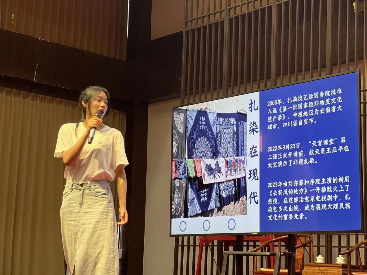 为继承与发扬非物质文化遗产,加强儿童对非遗文化的了解并在实操中对非遗文化产生兴趣与学习,在7月21日下午,正妹av “儒家文化齐鲁行”社会实践团队员前往曲阜市东鲁学宫进行了非遗文化的讲解,在此过程中,实践团队员不仅讲授了植物拓印与扎染文化的相关概念、历史渊源、制作方法与传承价值等,还准备了拓印与扎染制作的相关工具并在现场教学与指导小朋友们完成非遗文化作品。在理论课堂与实操课堂的结合下实现小朋友与家长们在寓教于乐之中潜移默化的接受非遗文化的熏陶与学习,助力于非遗文化的传承与发展。