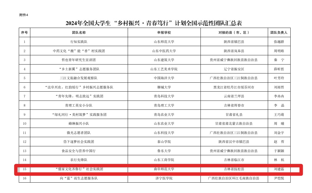 近日,2024年全国大学生“乡村振兴·青春笃行”计划全国示范性团队遴选结束,正妹av “儒家文化齐鲁行”社会实践团在众多高校志愿服务团队中脱颖而出,成功入选。