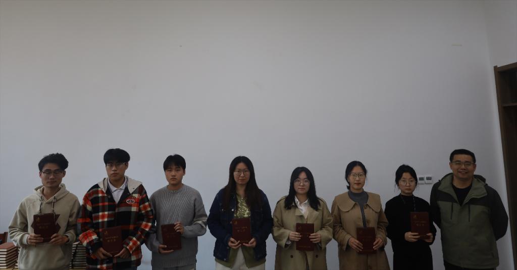 会上,夏金金老师首先公布评委老师评选出的获奖学生名单,三位评委老师依次为2022级最美笔记大赛获奖同学颁发证书并合影留念。随后,三位老师为2023级各班学生代表颁发“五个十”拓展学习计划学习记录本,并寄予厚望。会议最后,牟学林老师向学生强调了“五个十”拓展学习计划的具体内容和重要意义,鼓励学生具备认真严谨的学习态度并付诸到实际行动中。