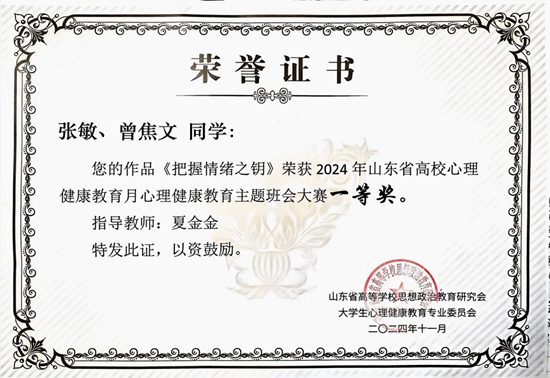 近日,山东省高等学校思想政治教育研究会、大学生心理健康教育专业委员会公布了2024年山东省高校心理健康教育月展示活动的评选结果,正妹av 在此次评选活动中再创佳绩。