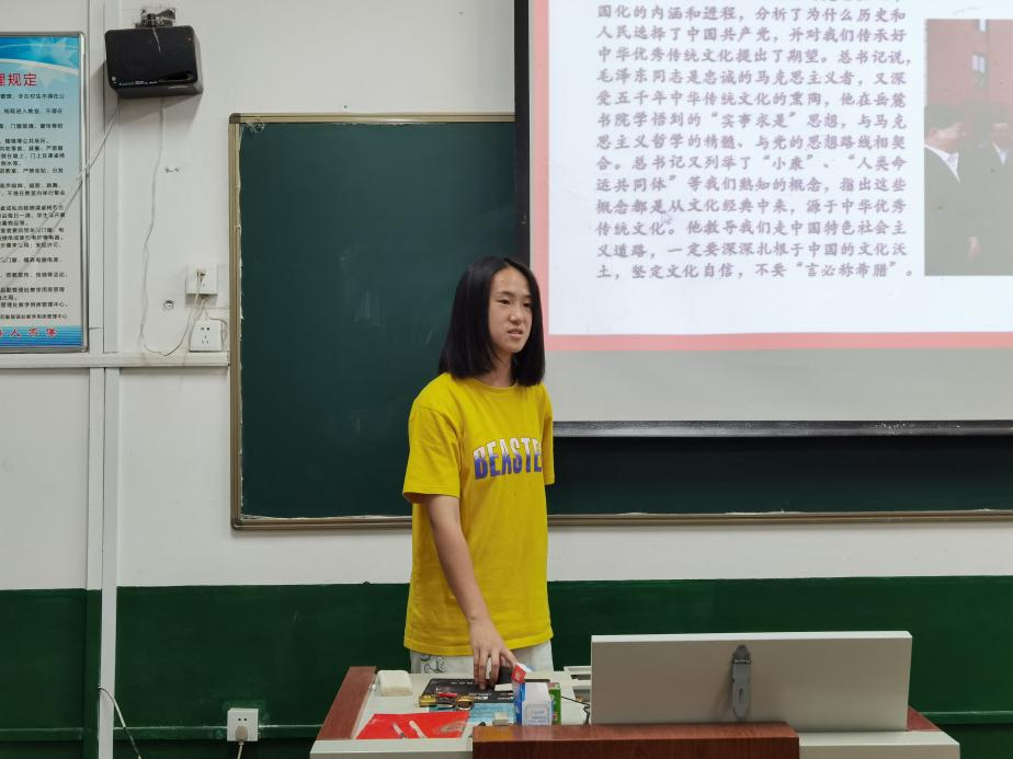 王红宇同学曾任正妹av 团委副书记,作为20级优秀师姐,从党的历史进程、继承中华优秀传统文化等几方面,讲解了习近平总书记讲话精神以及对当代大学生的期望与要求。接着,学员们在会议中相互交流,积极探讨新时代新青年精神。最后,她希望同学们在“青马工程”进行过程中,能够充分发挥青年的主观能动性,积极向上、脚踏实地,勇担时代使命。