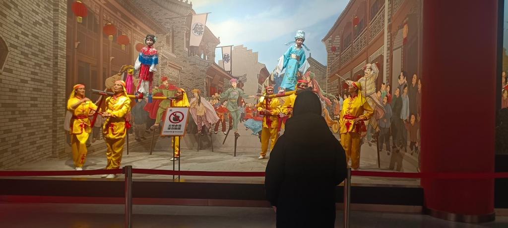 除了文物展览,博物馆还设置了非物质文化遗产展示区。在这里,实践队成员们欣赏到了郓州剪纸、面塑、郓城梆子戏等传统技艺的独特魅力。实践队走入仿造的郓州古街,刹那间仿佛穿越了时空,在古与今的交错间感受到郓城非遗那独特的魅力。红灯笼高高挂起,晕染出一片古韵。这里的每一处角落,都沉淀着岁月的韵味,诉说着郓城的悠悠过往,让队员们沉醉于这浓郁的非遗氛围与历史风情之中。