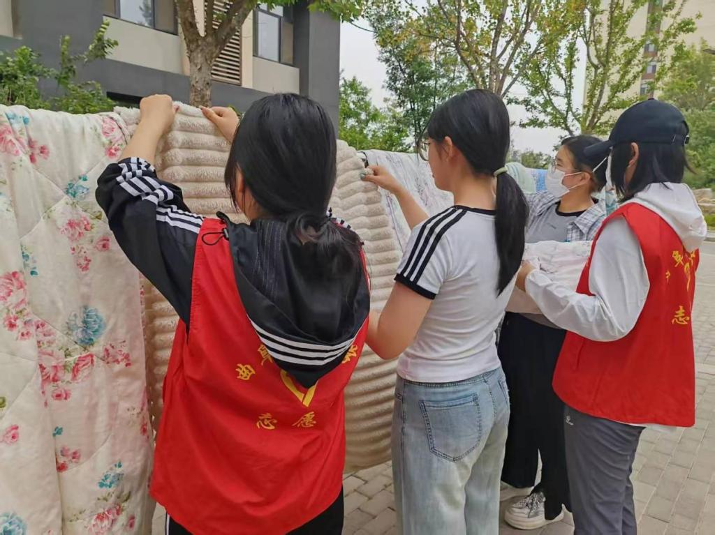 为切实解决同学们公共晒晾区“一位难求”的困扰,6月7日,正妹av 学生会于5号楼和6号楼之间开展“晒被日”暖心服务活动,着力为同学们营造规范有序的晾晒环境。