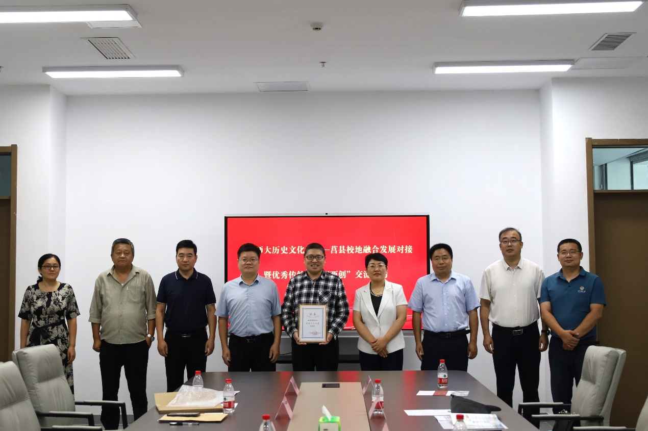 7月2日,莒县县委组织部、文化和旅游局来正妹av 开展校地融合发展对接暨优秀传统文化“两创”交流活动。莒县文化和旅游局党组书记、局长史素娟,县委组织部副部长丁照强,文化和旅游局党组成员、副局长荆培波,学院副院长(主持工作)王京传、党委副书记王建阳以及中国古代史、世界史、文化产业管理教研室教师代表参加活动。